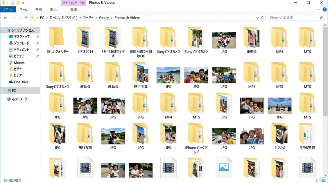 - 写真・動画フォルダの中に、ビデオカメラの動画が4箇所に分散