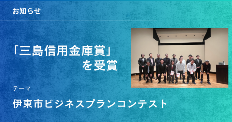 三島信用金庫賞 受賞! 伊東市ビジネスプランコンテスト